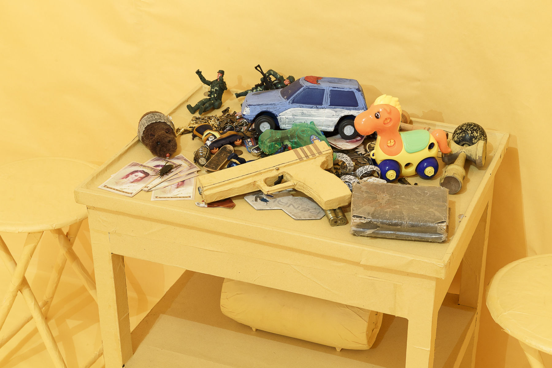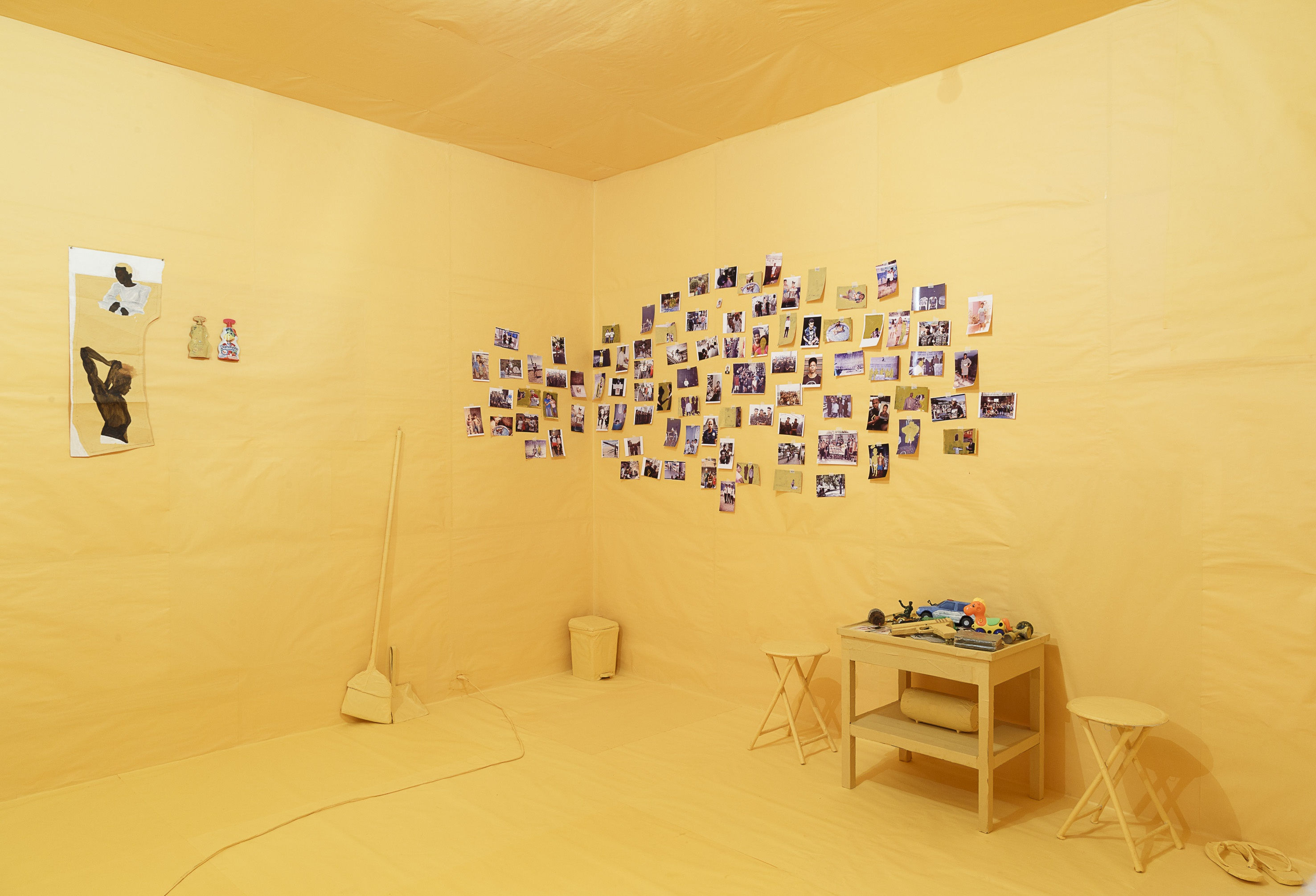 [...] Quando voltei a pintar Pardo é Papel, achei pertinente continuar com esse formato de grandes pinturas, pra intensificar o diálogo entre a quantidade de papel articulada e o número de corpos pretos em posições contemporâneas de poder. Eu queria densidade e contraste entre essas duas informações — corpo negro e papel pardo, por isso decidi ir adiante com pinturas de grande formato.”